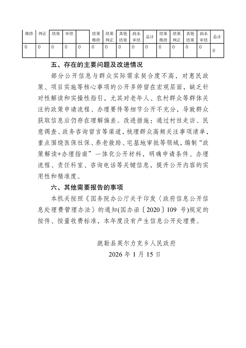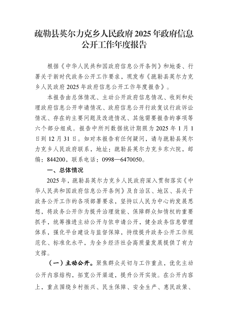 疏勒县英尔力克乡人民政府2025年政府信息公开工作年度报告