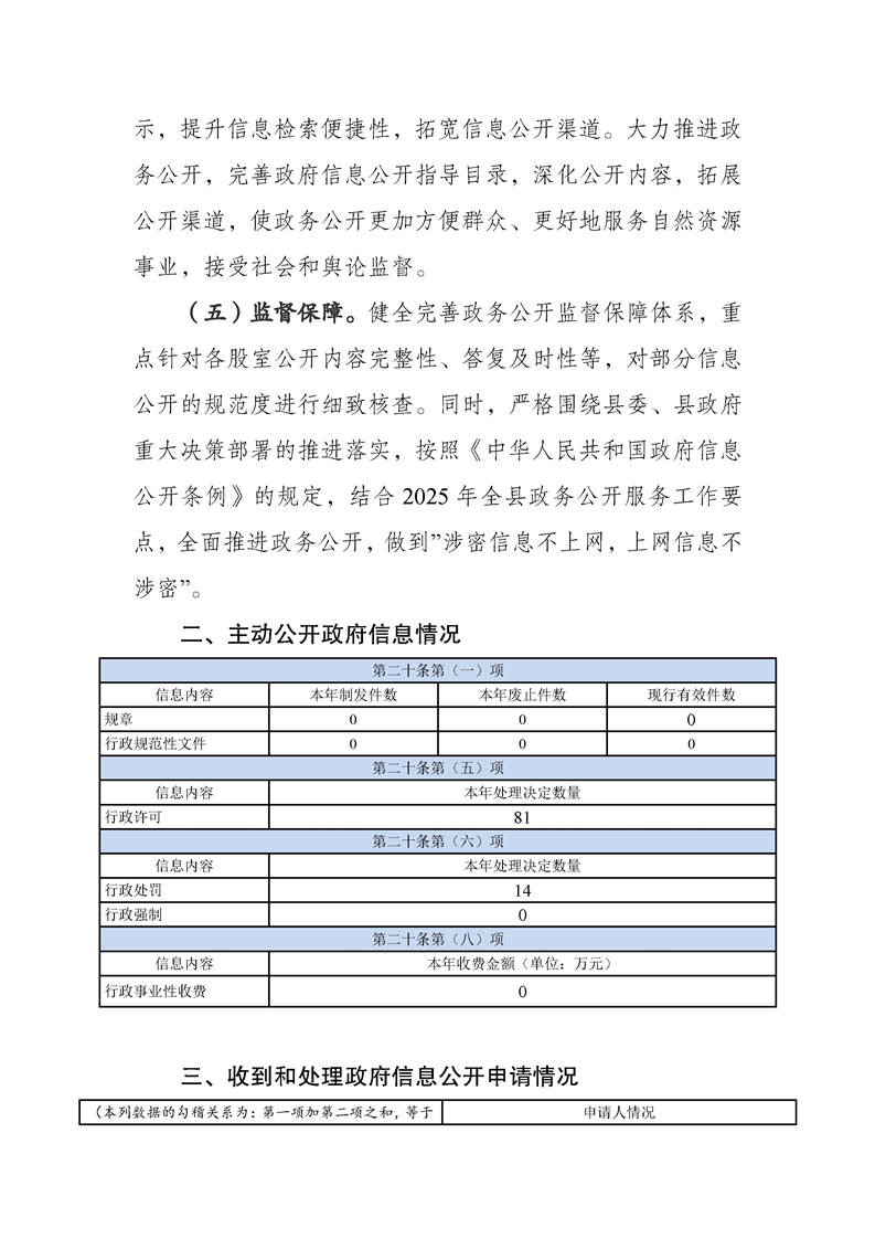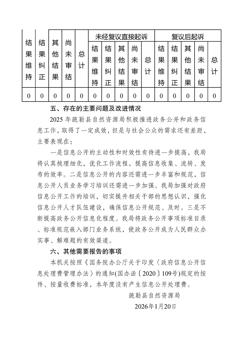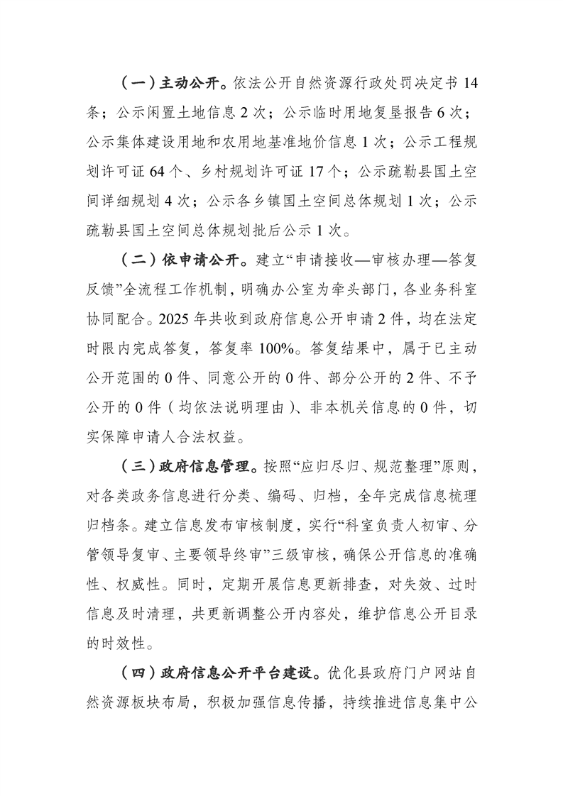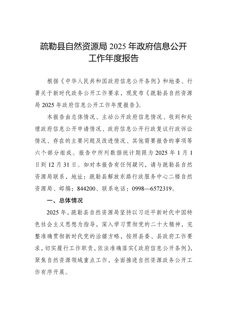 疏勒县自然资源局2025年政府信息公开工作年度报告