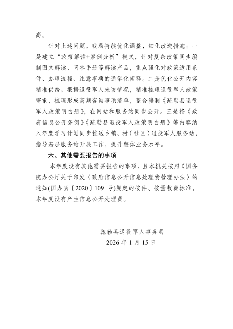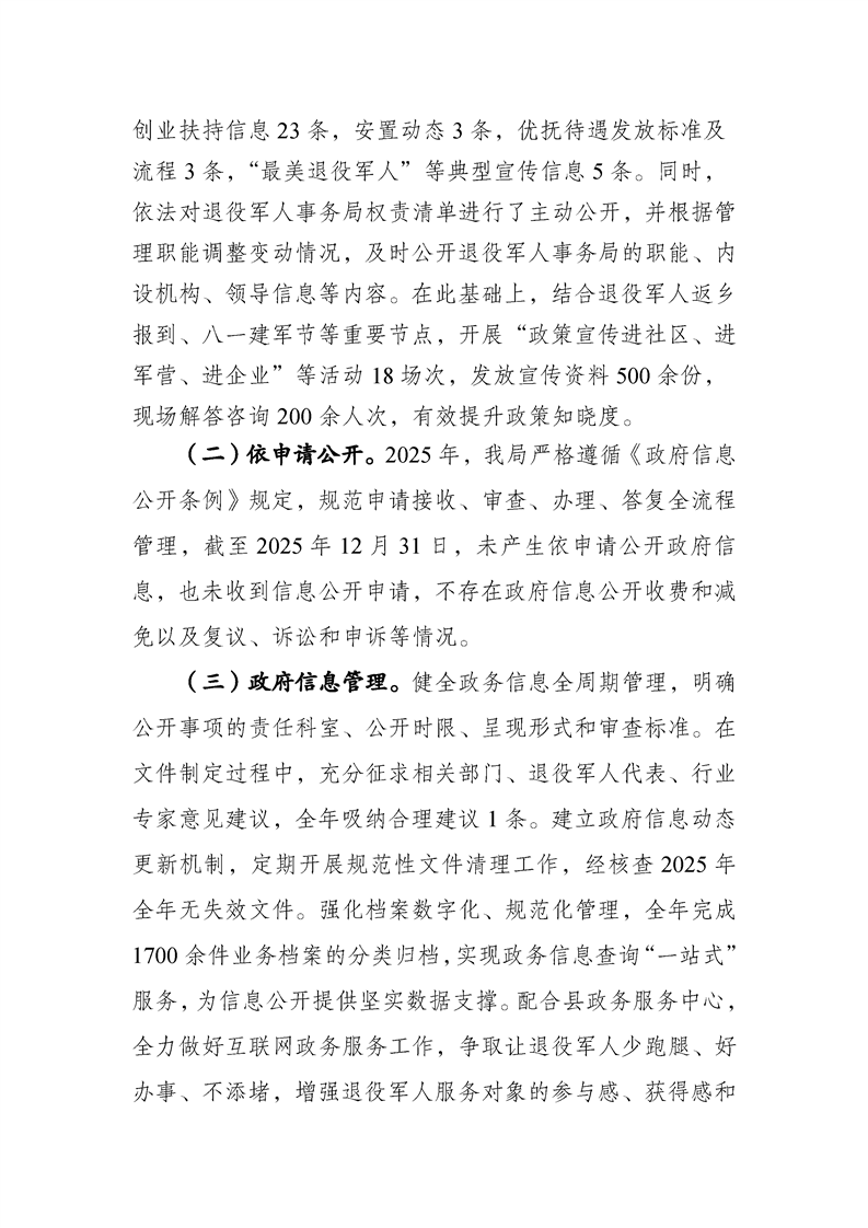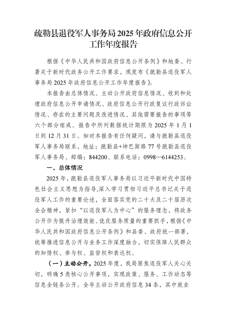 疏勒县退役军人事务局2025年政府信息公开工作年度报告