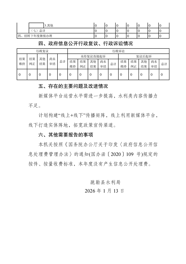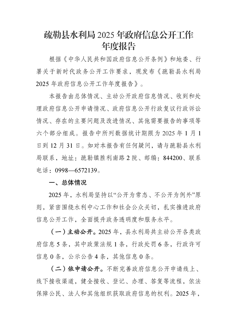 疏勒县水利局2025年政府信息公开工作年度报告