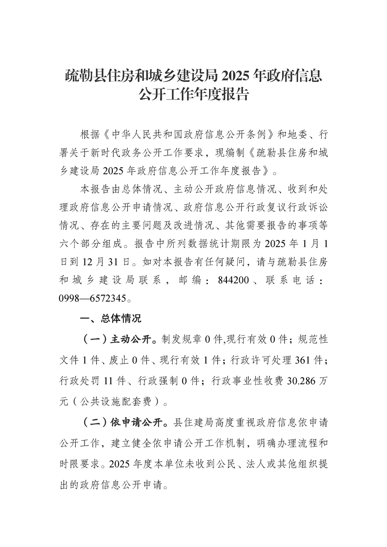 疏勒县住房和城乡建设局2025年政府信息公开工作年度报告