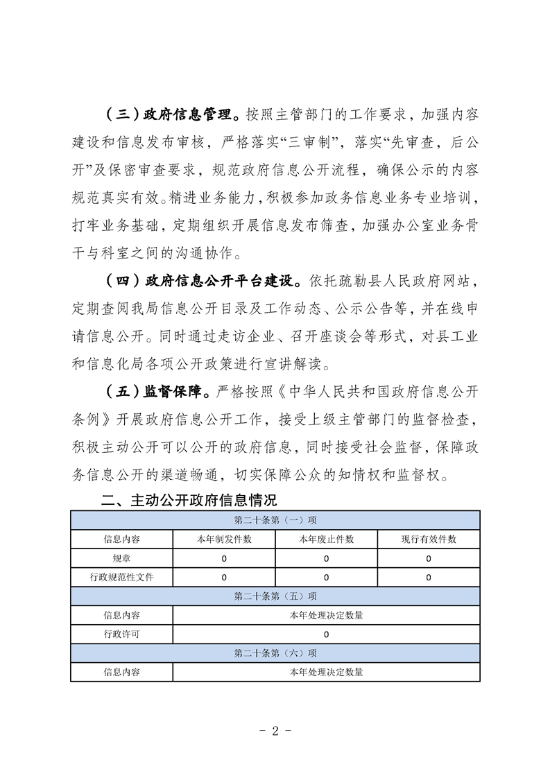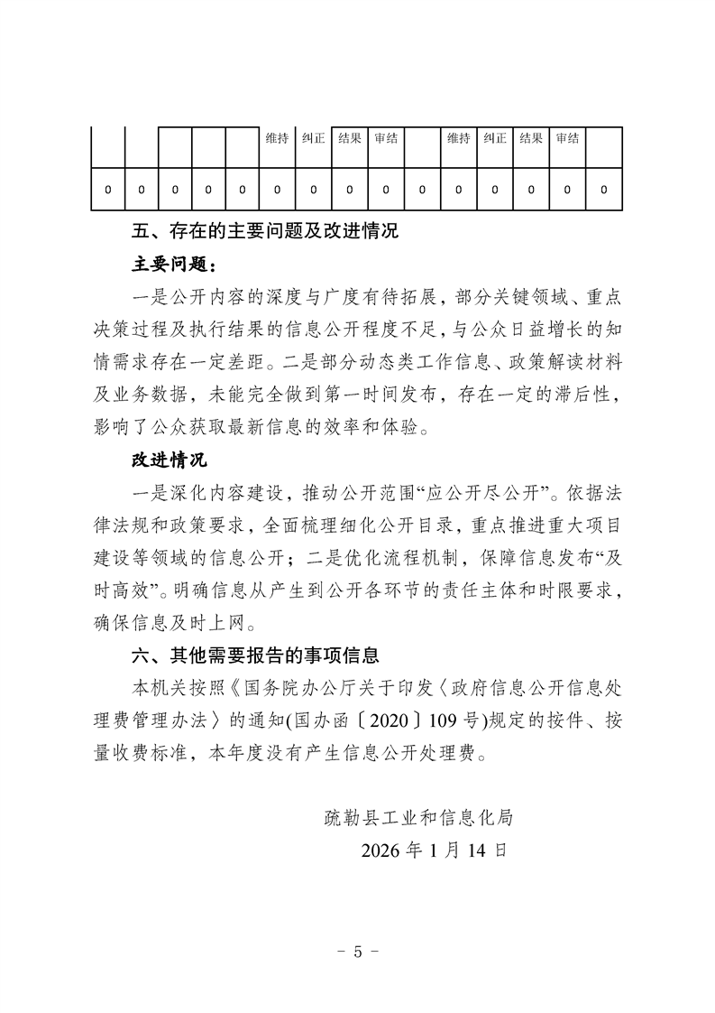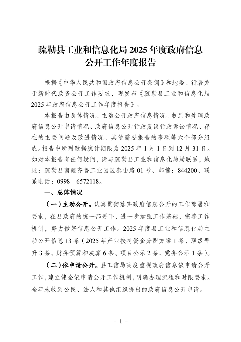 疏勒县工业和信息化局2025年政府信息公开工作年度报告