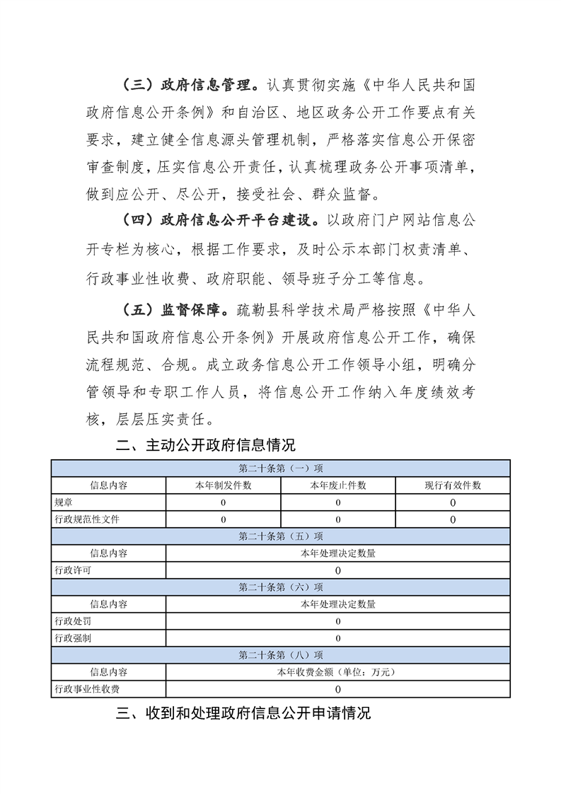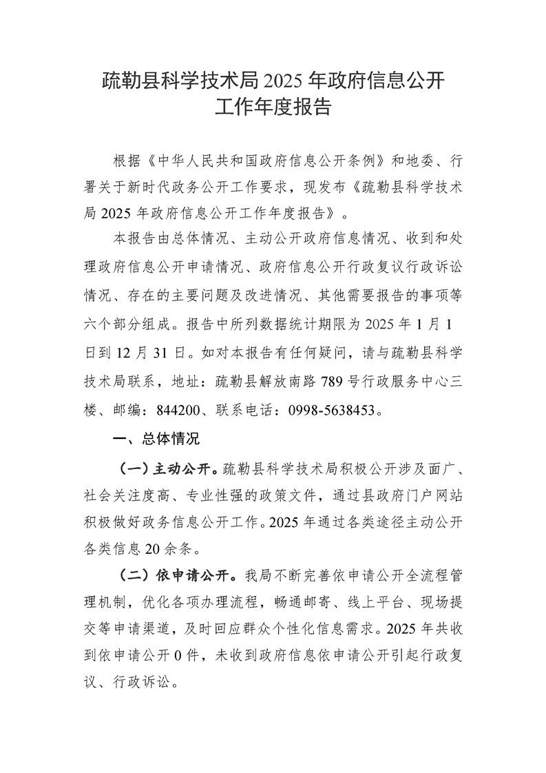 疏勒县科学技术局2025年政府信息公开工作年度报告