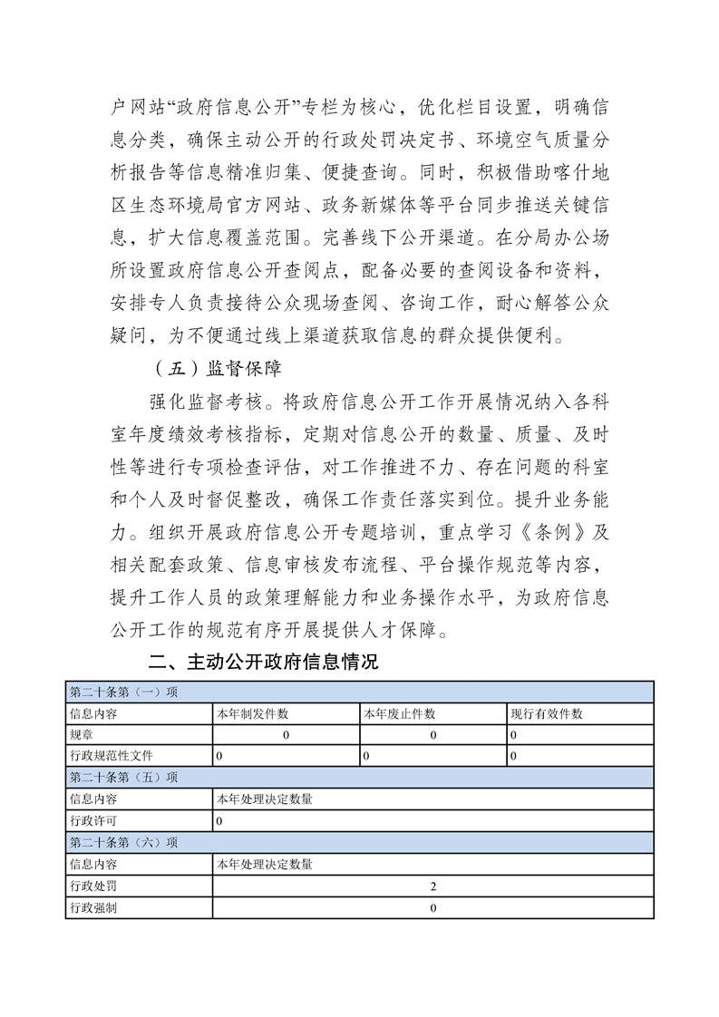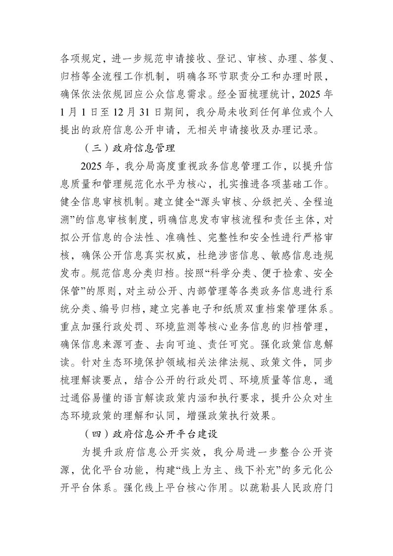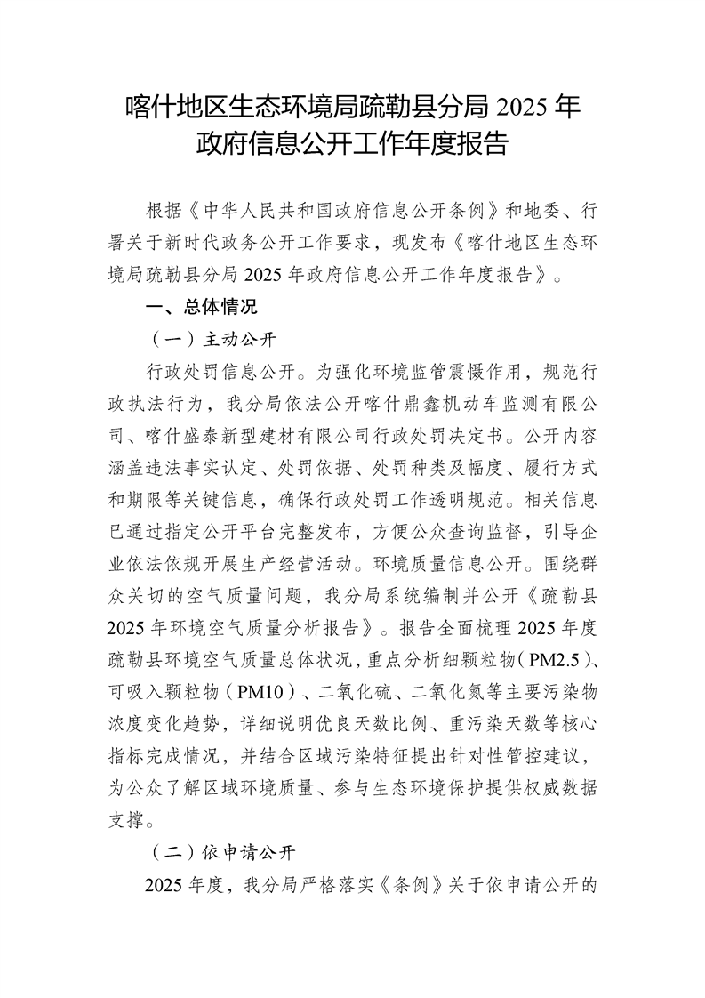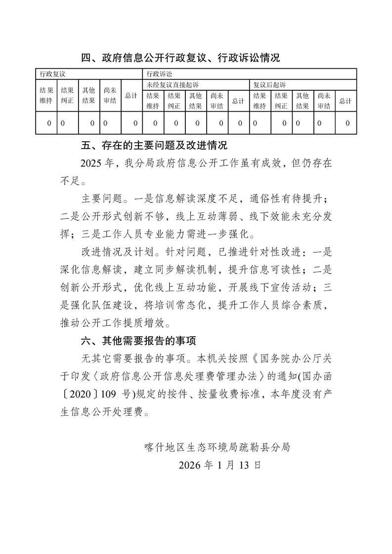 喀什地区生态环境局疏勒县分局2025年政府信息公开工作年度报告