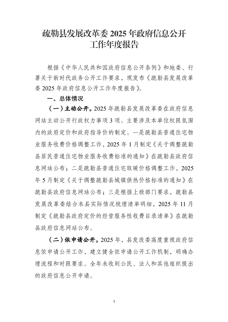 疏勒县发展改革委2025年政府信息公开工作年度报告