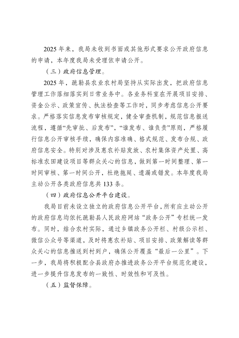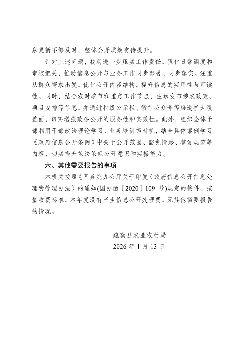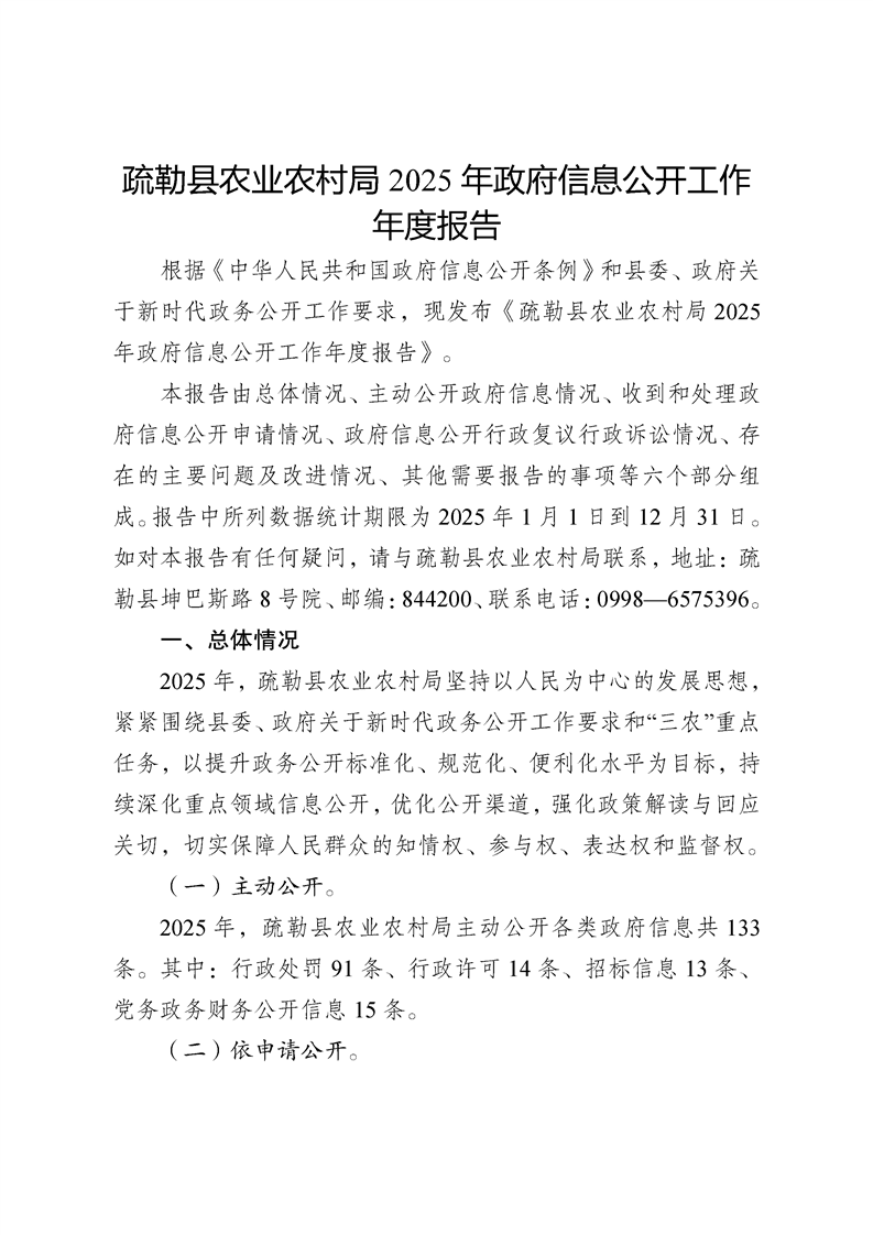 疏勒县农业农村局2025年政府信息公开工作年度报告