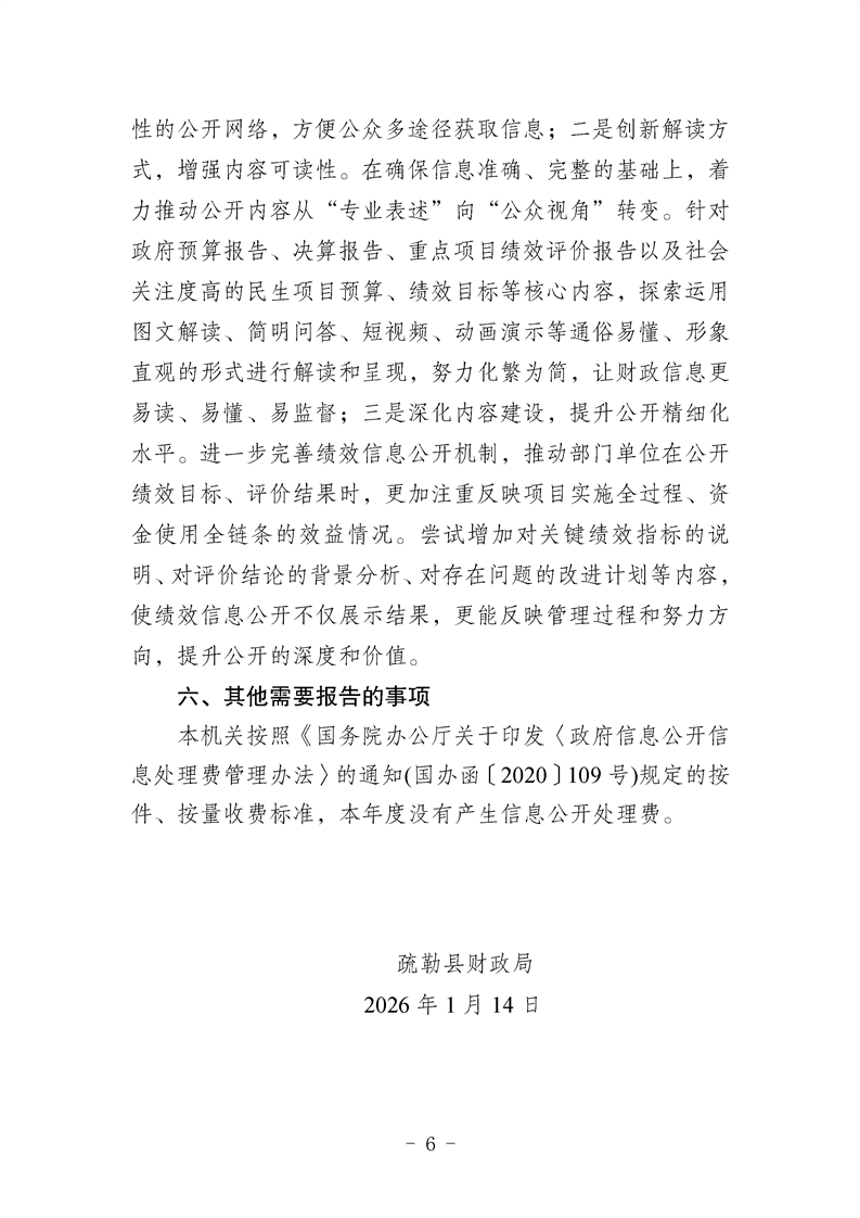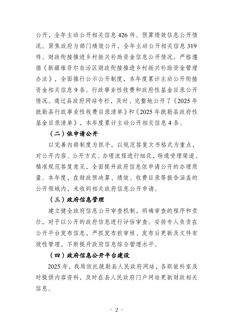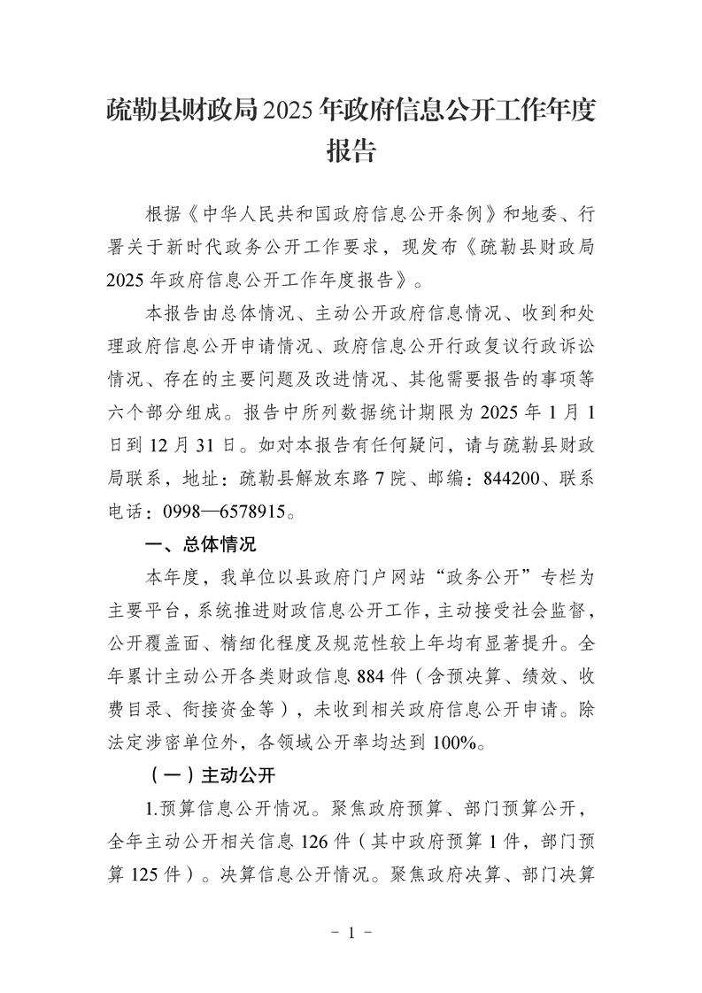 疏勒县财政局2025年政府信息公开工作年度报告