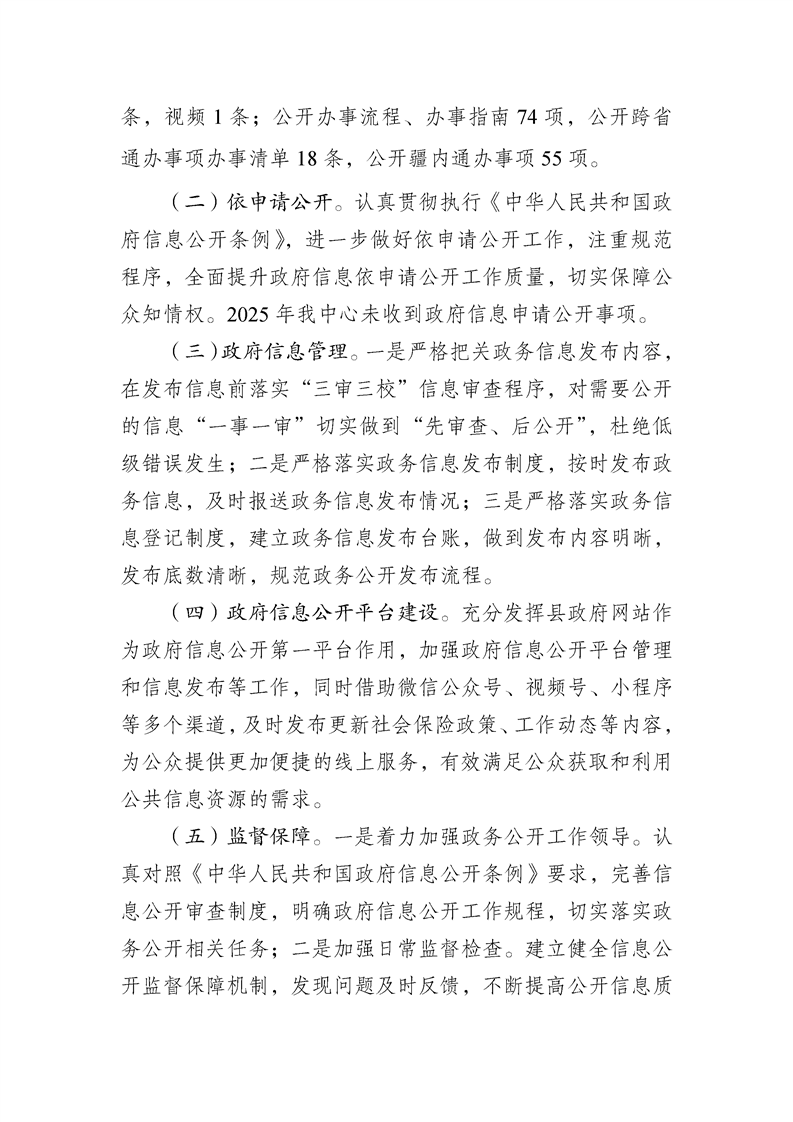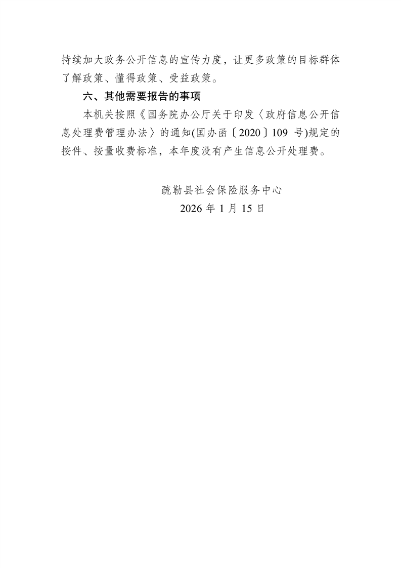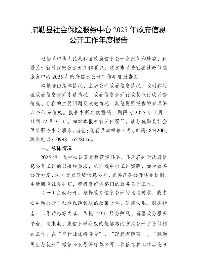 疏勒县社会保险服务中心2025年政府信息公开工作年度报告