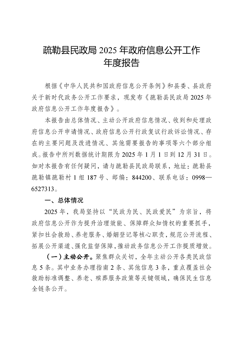 疏勒县民政局2025年政府信息公开工作年度报告