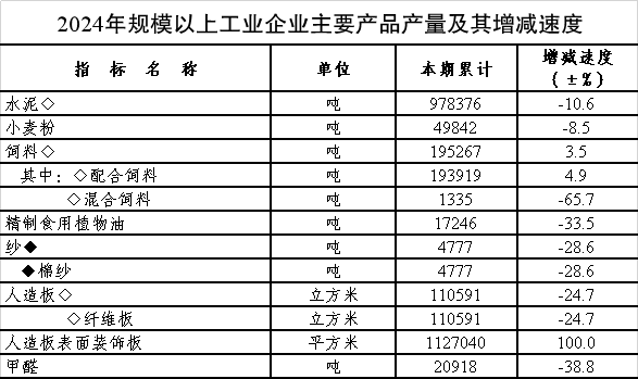 全年规模以上工业主要行业中,有色金属冶炼和压延加工业增加值比上年增长100%;水的生产和供应业增加值比上年增长100%;黑色金属冶炼和压延加工业增加值比上年增长35.7%;电气机械和器材制造业增加值比上年增长6.8%;农副食品加工业增加值比上年增长4.0 %;医药制造业增加值比上年增长2.3%;金属制品业增加值比上年下降4.7%;非金属矿物制品业增加值比上年下降7.0%;化学原料和化学制品制造业增加值比上年下降7.1%;木材加工和木、竹、藤、棕、草制品业增加值比上年下降8.4%;橡胶和塑料制品业增加值比上年下降10.4%;文教、工美、体育和娱乐用品制造业增加值比上年下降16.5%;纺织业增加值下降23.0%;通用设备制造业增加值比上年下降25.0。