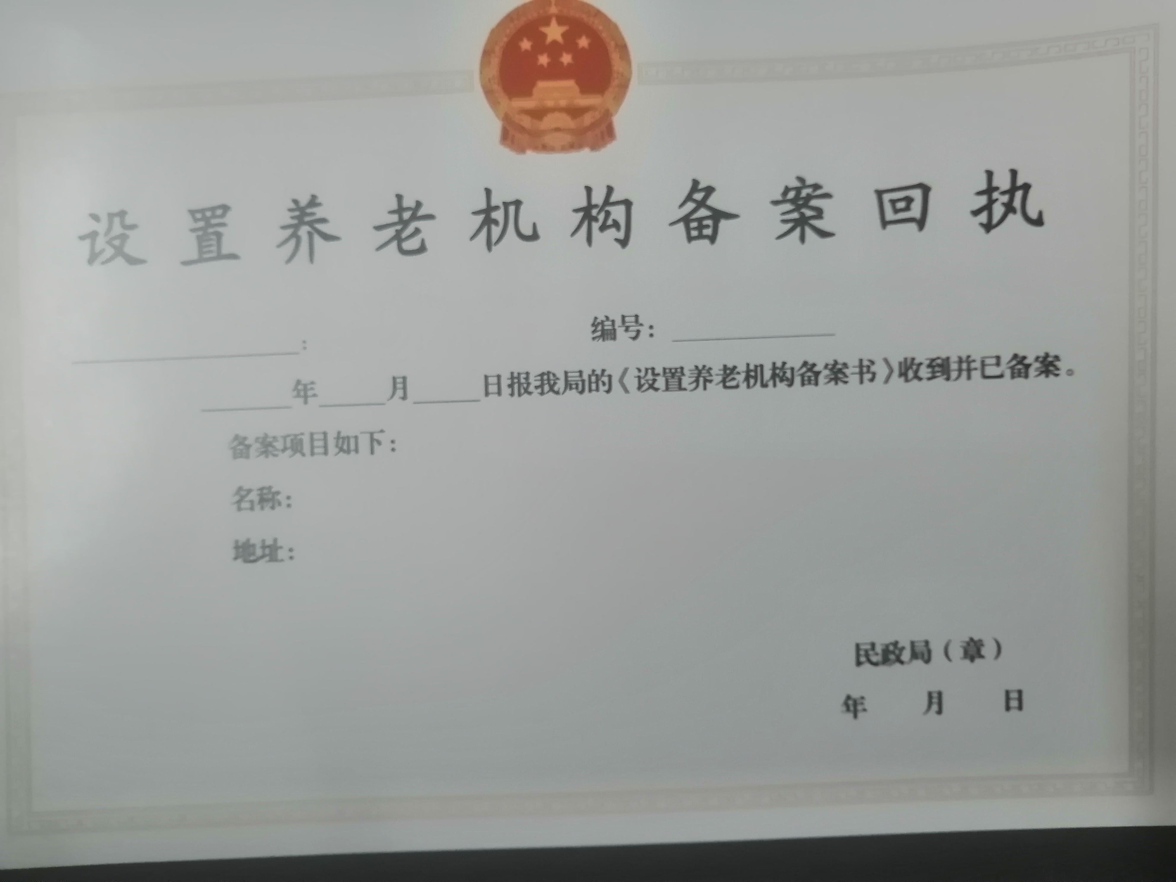 设置养老机构备案回执